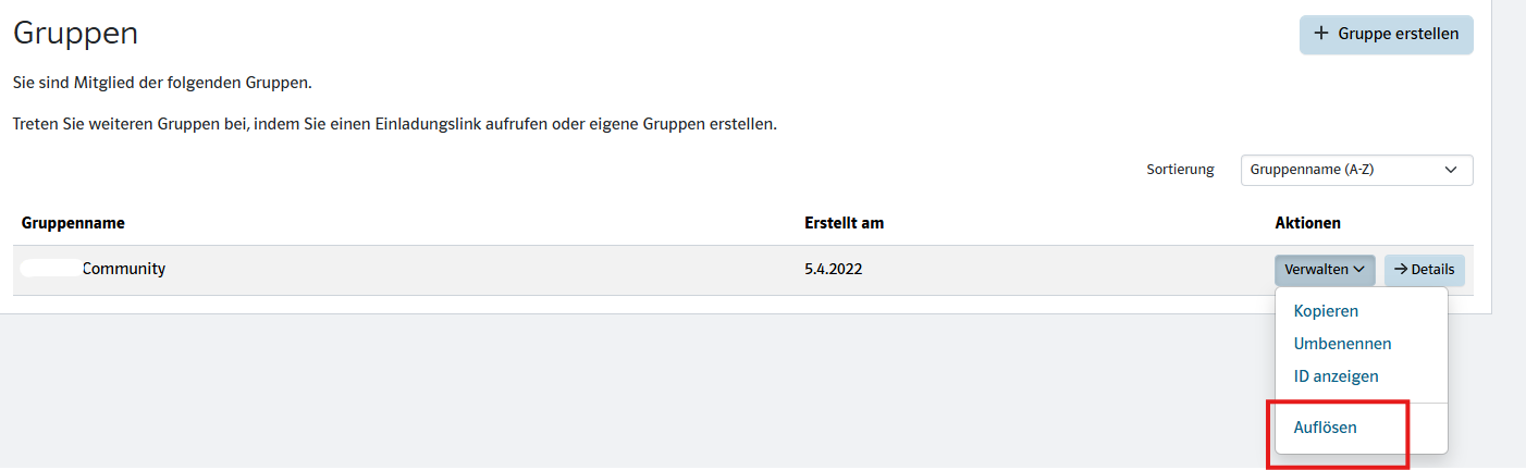 Man hat die Möglichkeit, eine Gruppe zu löschen bzw. aufzulösen: